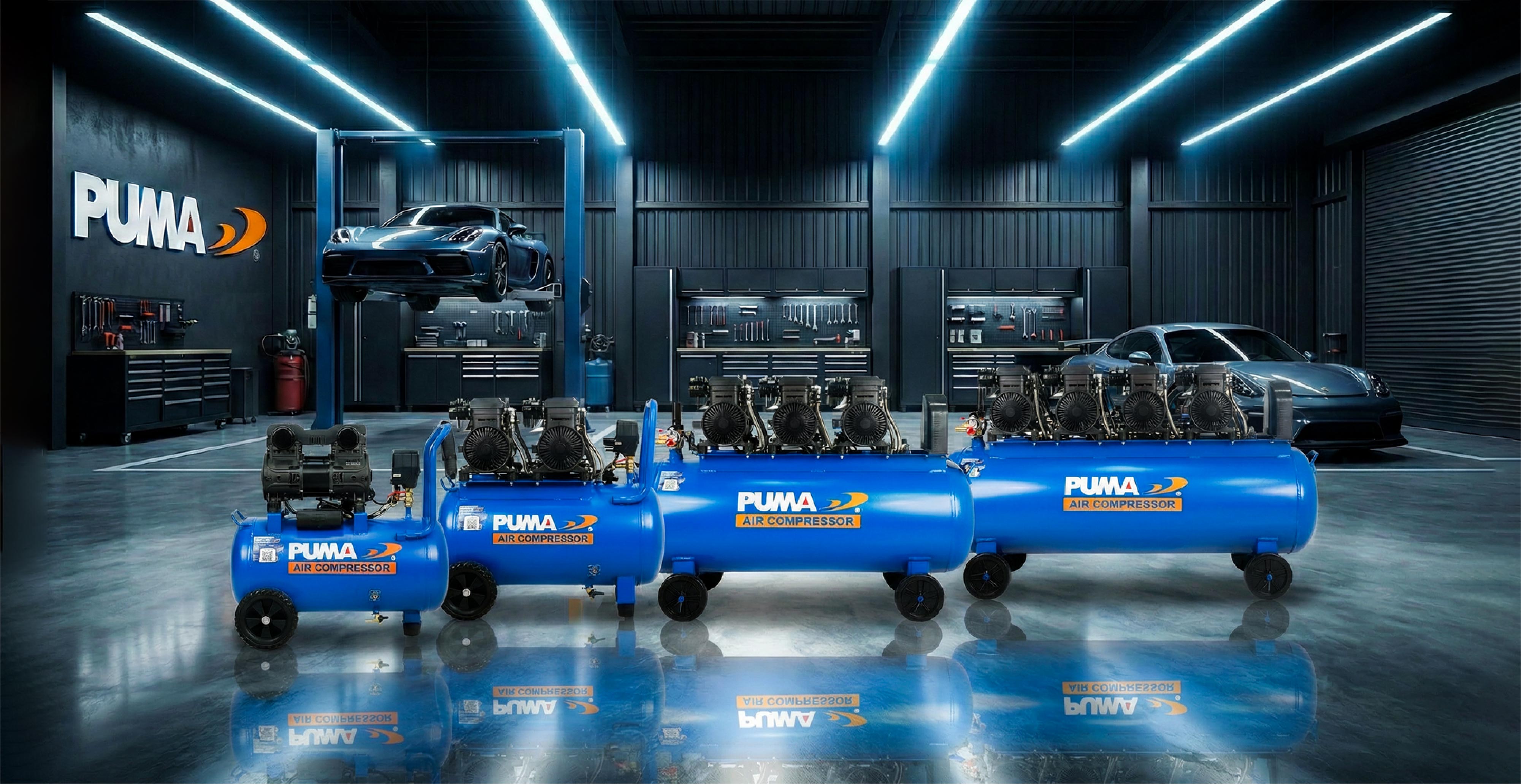 ปั๊มลมไร้น้ำมัน PUMA 750Wx3 100L HUSH 100เป็นปั๊มลมที่ไม่ใช้น้ำมันในการหล่อลื่น เสียงเงียบลมสะอาด ดูแลรักษาง่ายมอเตอร์ทองแดงแท้ 100%ดีไซน์โฉมใหม่ เข้ม..